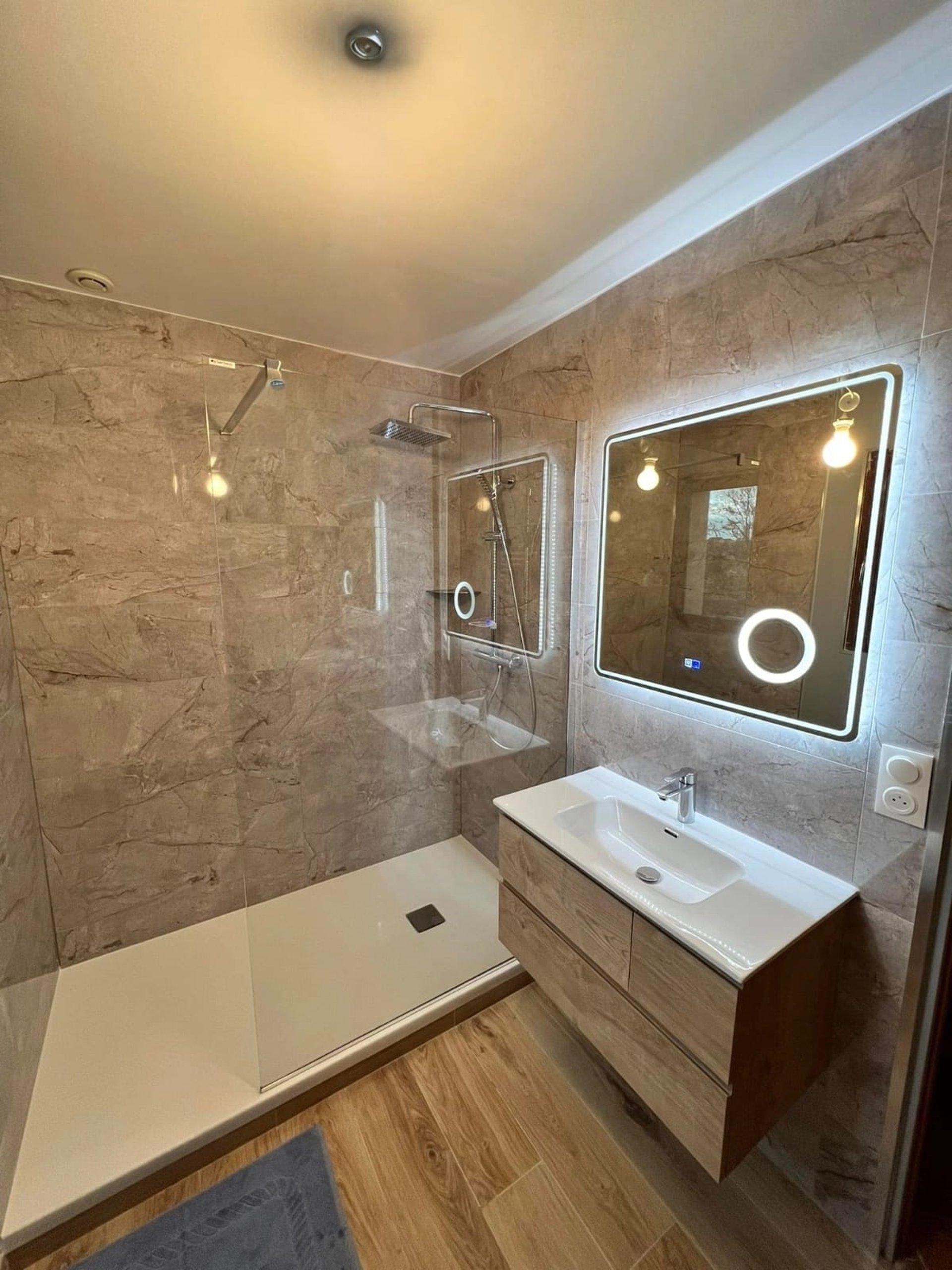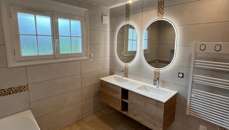 Au-delà de la réalisation, nous vous guidons dans la conception de votre salle de bain : conseils personnalisés, choix des matériaux et plans 3D. Vous pourrez visualiser le rendu final de votre futur espace avant le lancement des travaux. Une approche sur mesure pour un résultat à votre image.