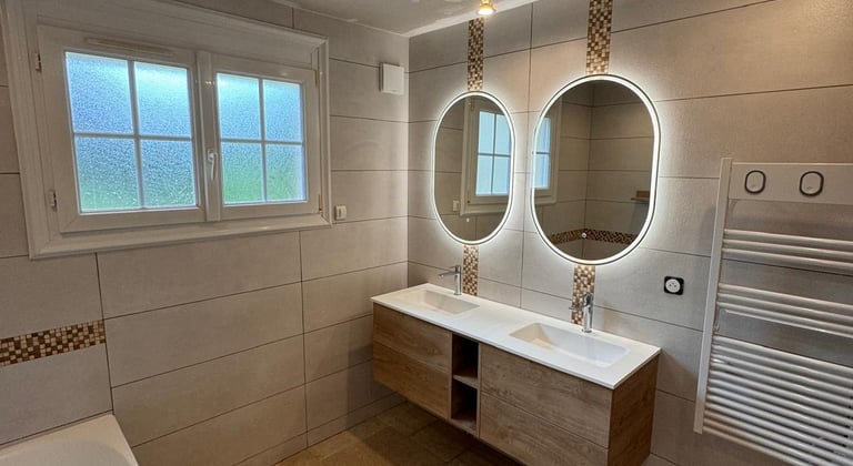 Au-delà de la réalisation, nous vous guidons dans la conception de votre salle de bain : conseils personnalisés, choix des matériaux et plans 3D. Vous pourrez visualiser le rendu final de votre futur espace avant le lancement des travaux. Une approche sur mesure pour un résultat à votre image.